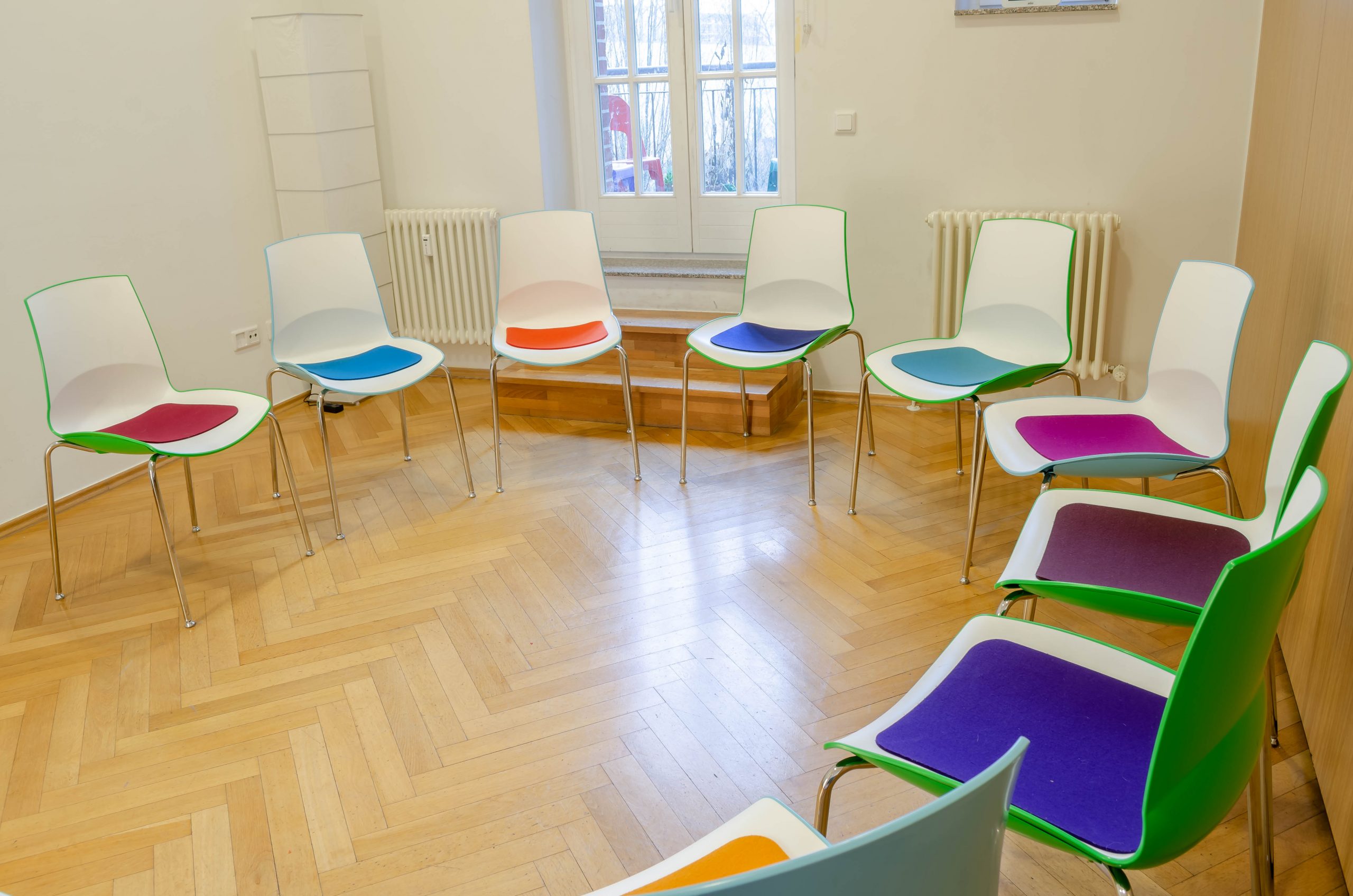 Neben dem Seminarraum gibt es einen Gruppenraum für den Kontakt und Entspannung am Rande. Durch die Küche nebenan ist die Versorgung mit Kaffee und Tee gesichert.